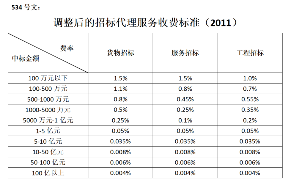 招標(biāo)代理服務(wù)收費標(biāo)準(zhǔn)